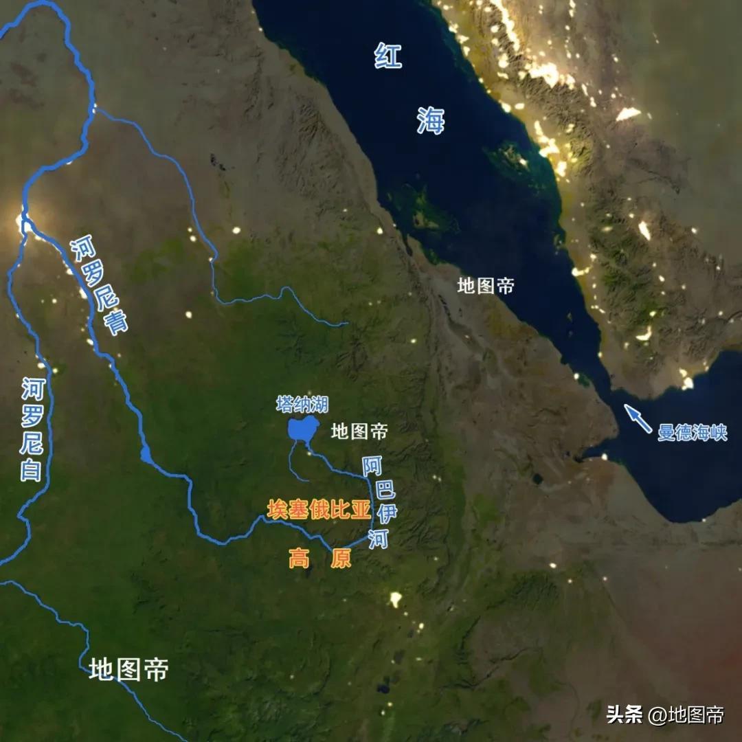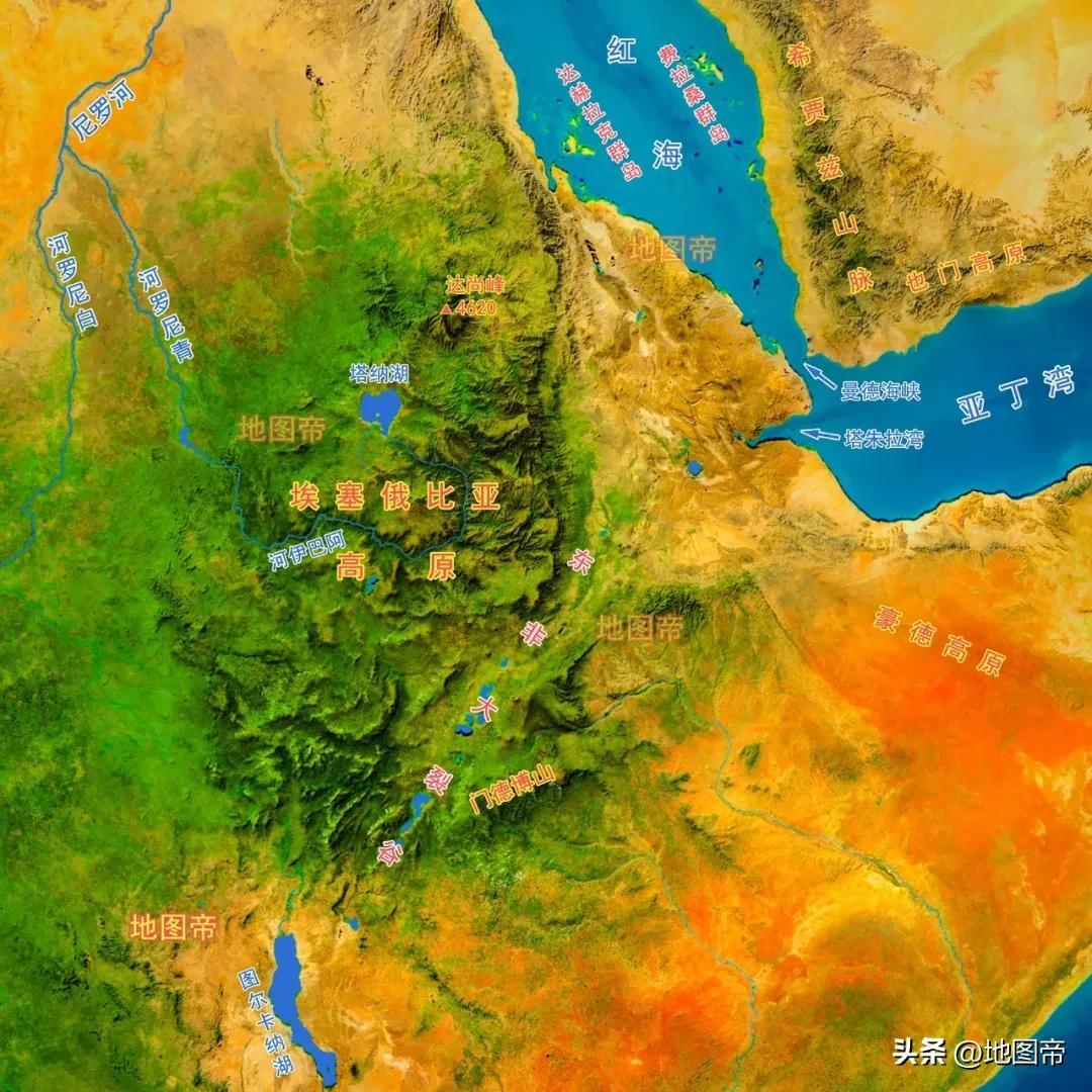 埃塞俄比亞高原冰雪融化產生泉水,是非洲難得的不缺水國家。西北部的塔納湖,是青尼羅河的源頭,表面積約3200平方千米,與鄱陽湖不相上下。