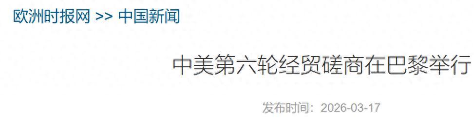 《中美第六輪經貿磋商在巴黎舉行》2026-03-17 來源:歐洲時報網