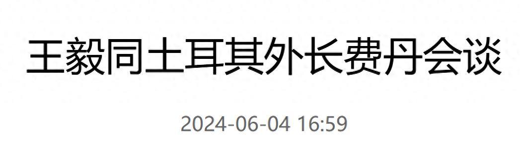 《王毅同土耳其外長費丹會談》2024-06-04 來源:中國外交部