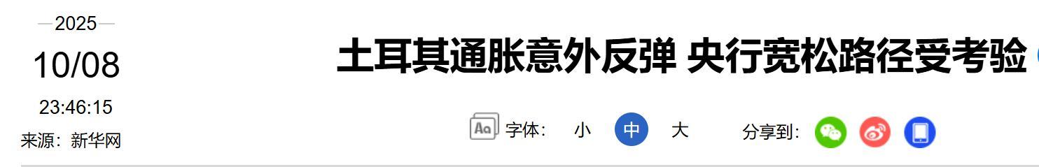 《土耳其通脹意外反彈 央行寬鬆路徑受考驗》2025/10/08 來源:新華網