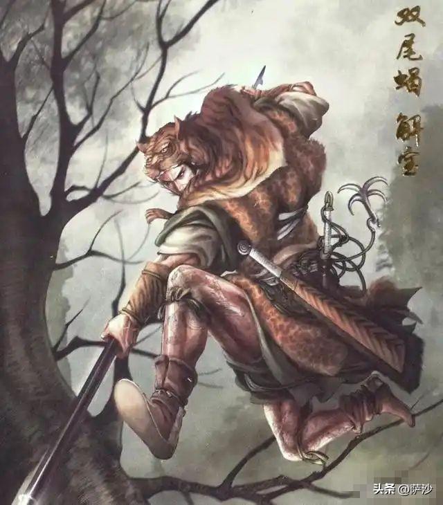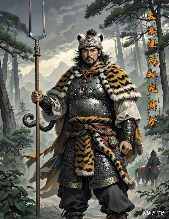 書中說的很清楚:且說登州山下有一家獵戶,弟兄兩個,哥哥喚做解珍,兄弟喚做解寶。弟兄兩個都使渾鐵點鋼叉,有一身驚人的武藝。當州里的獵戶們都讓他第一。那解珍一個綽號喚做兩頭蛇,這解寶綽號叫做雙尾蠍。二人父母俱亡,不曾婚娶。那哥哥七尺以上身材,紫棠色麪皮,腰細膀闊。那個兄弟解寶,更是利害,也有七尺以上身材,面圓身黑,兩隻腿上刺着兩個飛天夜叉。有時性起,恨不得騰天倒地,拔樹搖山。