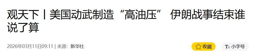 《觀天下丨美國動武製造“高油壓” 伊朗戰事結束誰說了算》 2026年03月11日 來源:新華社