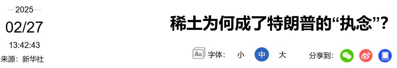 《稀土爲何成了特朗普的“執念”?》 2025/02/27 來源:新華社