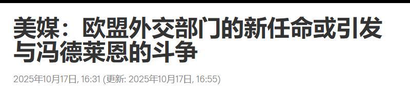 《美媒:歐盟外交部門的新任命或引發與馮德萊恩的鬥爭》2025年10月17日 來源:俄羅斯衛星通訊社