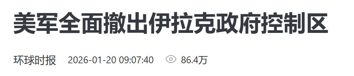 《美軍全面撤出伊拉克政府控制區》2026-01-20 來源:環球時報