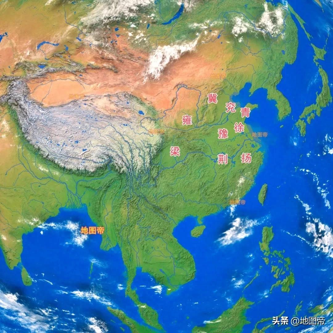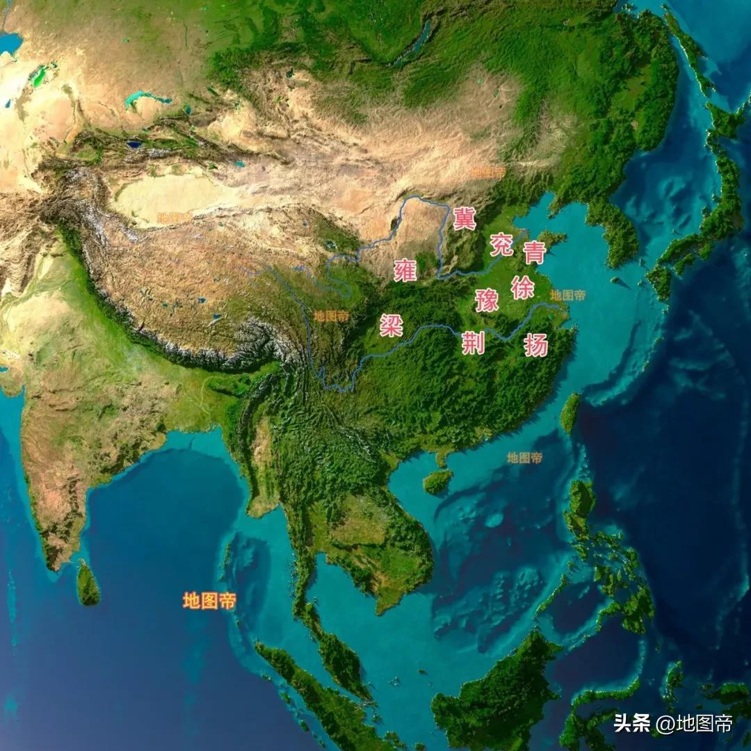 大禹爲增強兵權,調動人力物力,將天下按照山川河道分爲九州,即披九山,通九澤,決九河,定九州。