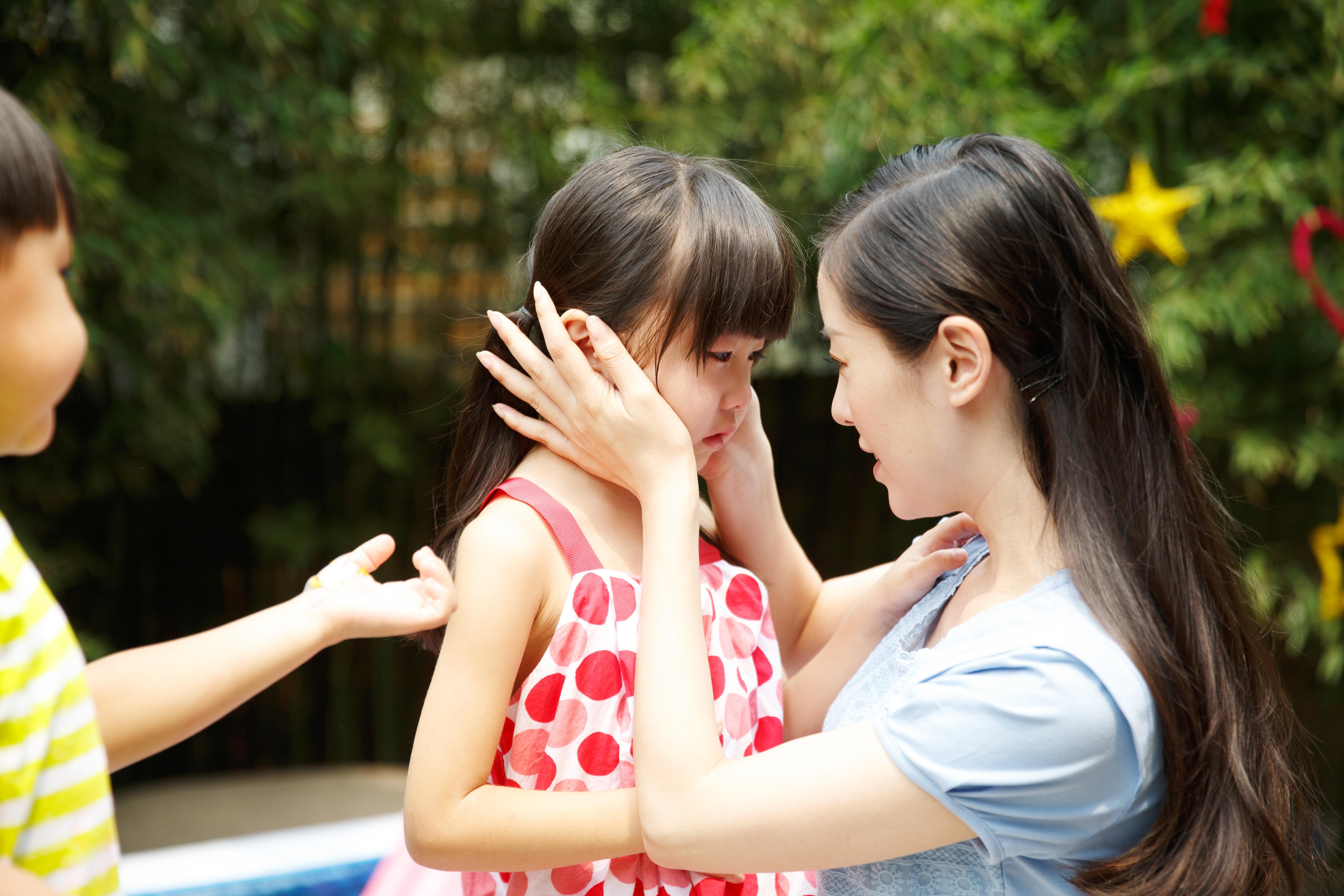 不要怒吼“閉嘴”,而是拉着孩子的手,鼓勵孩子說出哭的原因。