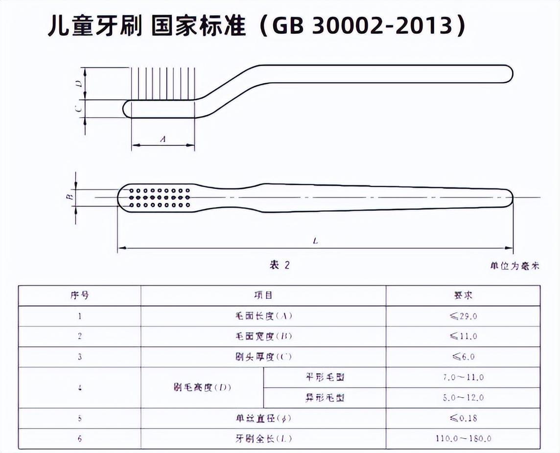 其實,兒童牙刷(14歲及以下兒童使用的牙刷)這塊國家有相關標準(GB 30002-2013),先一起來看下: