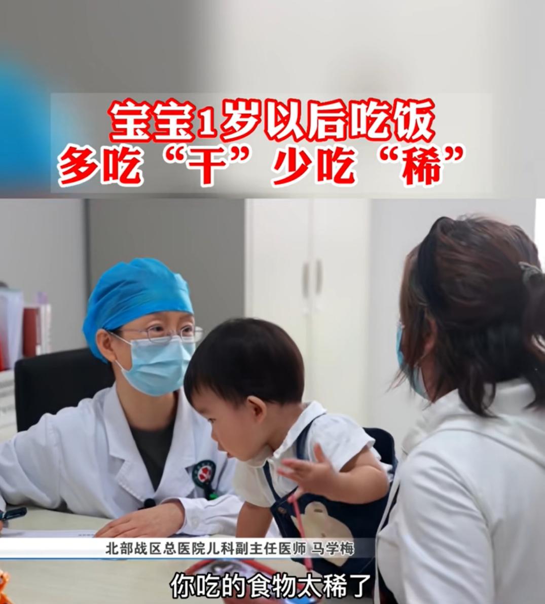 所以馬醫生就提醒媽媽:一歲之後要給孩子多喫乾的少喫稀的,多喫乾的是因爲孩子胃腸的容量有限,孩子每次喫的東西不多,但是孩子需要的營養比較多,所以少喫一些比較稀的粥,給孩子喫飯,這個飯可以煮得稍微軟一點,孩子好消化一些,但這樣的營養價值會更高。