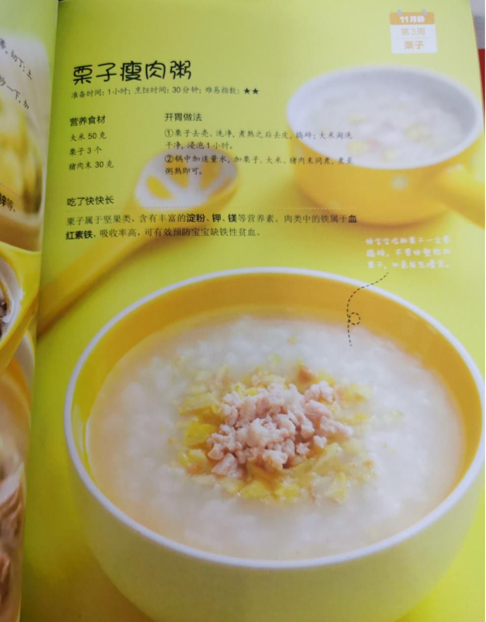 還有寶寶六個月到三歲每一個月齡的食譜安排,其中包含食物的輔食的性狀,輔食的量以及輔食的詳細製作方法,需要用到什麼原材料?需要多少克以及怎麼去處理原材料?如何去烹飪?做出來的成品又是什麼樣子的?可以給寶寶補充什麼樣的營養?都寫得很清楚。