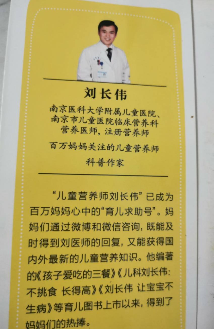 這本輔食書是由著名的營養師劉長偉撰寫的,他不僅僅在南京一家三甲醫院的營養科坐診,同時也在網上幫媽媽們答疑各種關於兒童營養的問題,在網上有上百萬粉絲,同時他還寫了好幾本關於兒童營養的書籍,在市場上都很暢銷,可以說非常的專業和權威。