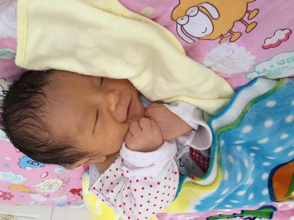 孩子出生的時候就有9斤多,是剖腹產生出來的,她從產房裏面縫合回來,第一眼看到孩子的時候就嚇住了,她跟老公說:老公,你看我們家孩子沒有眼睛,這可怎麼辦呢?