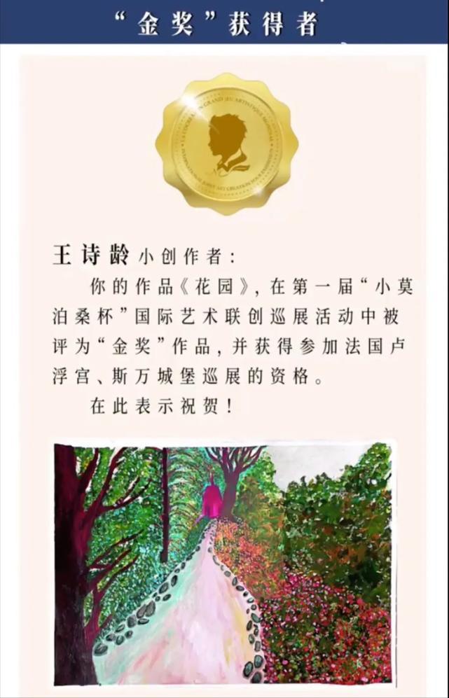 所以她的眼光也是非常高的,也是非常有眼見的,她的女兒雖然小時候的培養花了非常多錢,但是曾經有過一幅畫能賣12萬,而且女兒的畫作獲得了“小莫泊桑杯”國際藝術聯創巡演的金獎,在國外還參加了展覽。