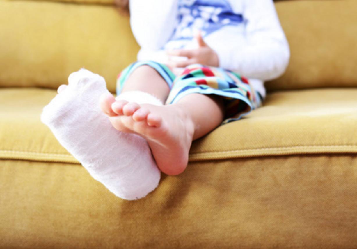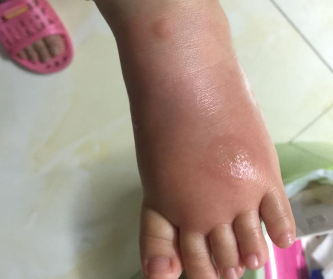 在喫飯的時候,孩子拿起那一碗剛剛煮出來的熱湯,不小心就上倒了碰到腳上,當時媽媽就先去廁所用流動水給孩子衝有25分鐘,之後又用剪刀剪開孩子的襪子,再之後又用冷水給孩子泡了15分鐘,然後蓋上紗布就送孩子來醫院了。