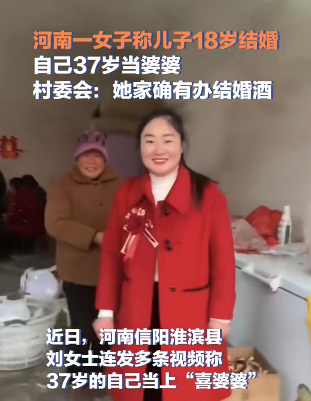 河南有一個37歲的婦女拍出自己家裏面辦喜事的視頻,在視頻裏面她說自己37歲就要當喜婆婆了,也就是自己37歲,兒子就要結婚了。