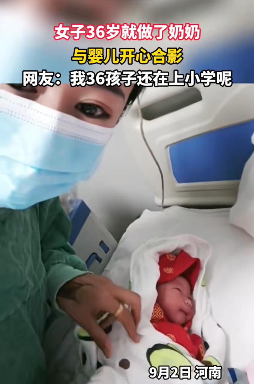 “36歲嫩奶奶”抱孫子走紅,同齡人還單身!父母早戀娃也早戀