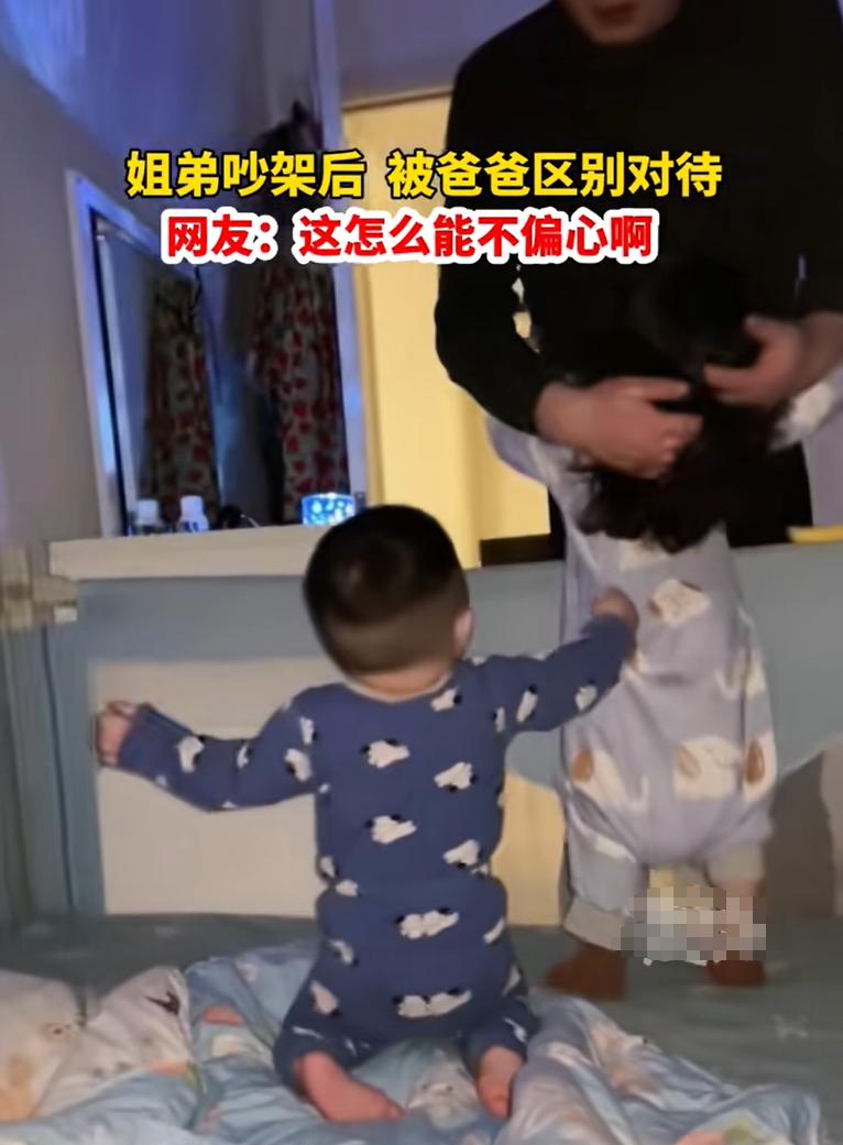 爸爸邁開大長腿走到牀邊,伸出雙手溫柔地幫女兒整理那一頭亂糟糟的長髮,一邊轉過去怒懟小兒子:你給我過來,再兇我姑娘我削你!