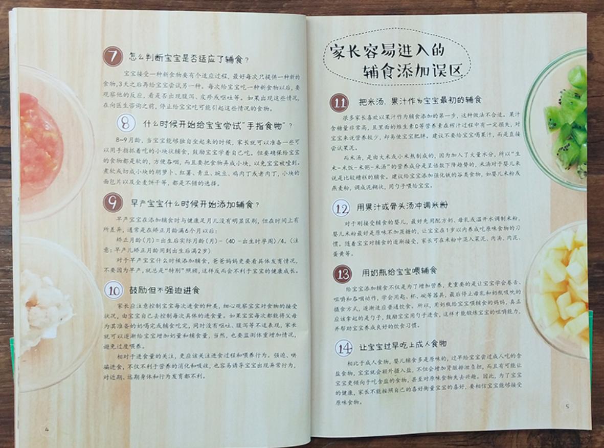 裏面會告訴家長們輔食添加的原則,輔食添加的誤區,輔食添加過程中出現問題要怎麼解決,輔食添加需要什麼工具,都寫得很清楚。
