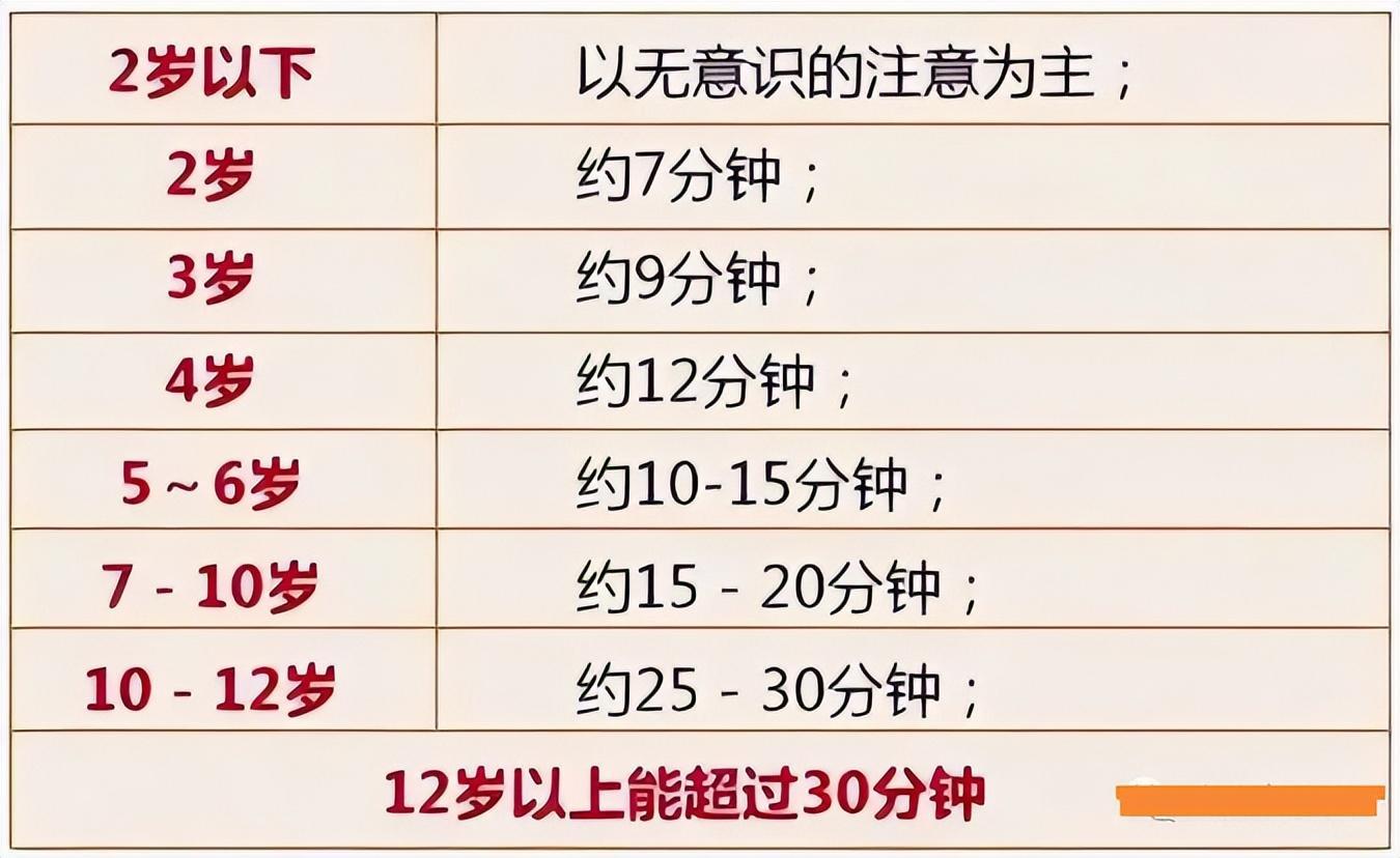 下圖12歲前不同年齡段孩子的專注力達標時間,你家娃達標了嗎?