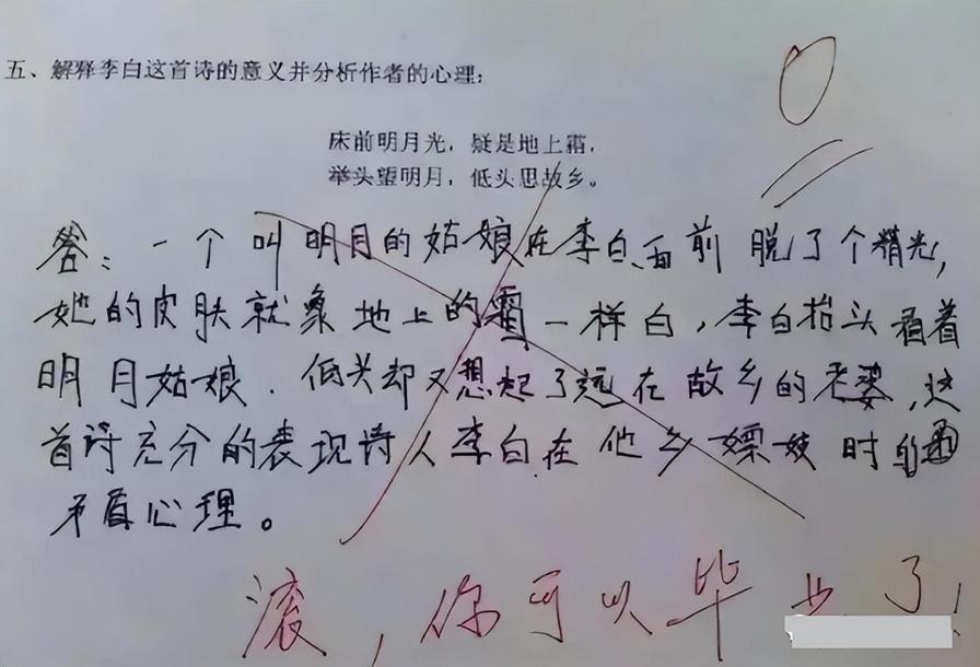 好傢伙,大家快看看這個腦洞大開的孩子,硬生生將偉大的浪漫主義詩人形象給顛覆了,難怪老師直接吼道:“滾,你可以畢業了”。