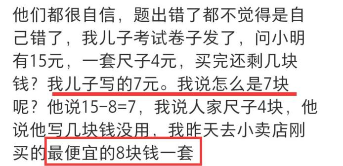 這孩子很認真的回答道:我剛去小賣部問了,最便宜的尺子是8元,哈哈哈,這孩子太務實了,考試主打一個嚴謹。