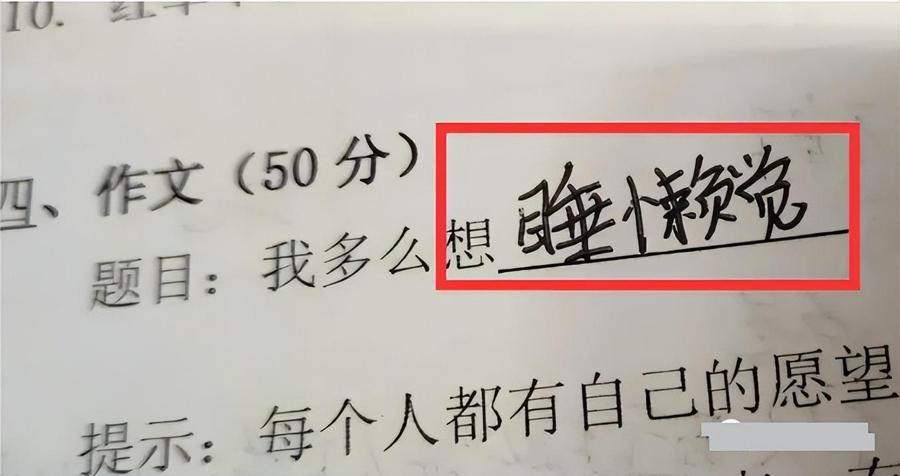 讓補充完整作文題目,人家要麼寫的是:我多麼想睡懶覺!要麼直接是“此處省去600字”,不知道老師打分時,會不會給孩子也省去60分呢?