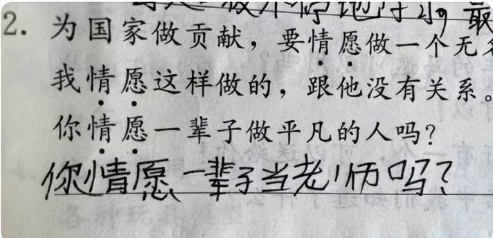 題目讓用“情願”仿寫造句,這孩子質問老師:你情願一輩子當老師嗎?
