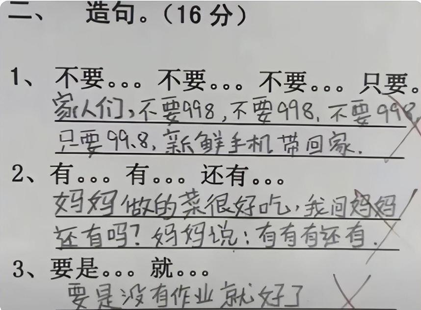 孩子們的造句,有人說大實話,就有人還原生活場景,讓用不要...不要...不要...不要造句,這孩子也寫的太有畫面感了吧,彷彿就置於在農貿市場。