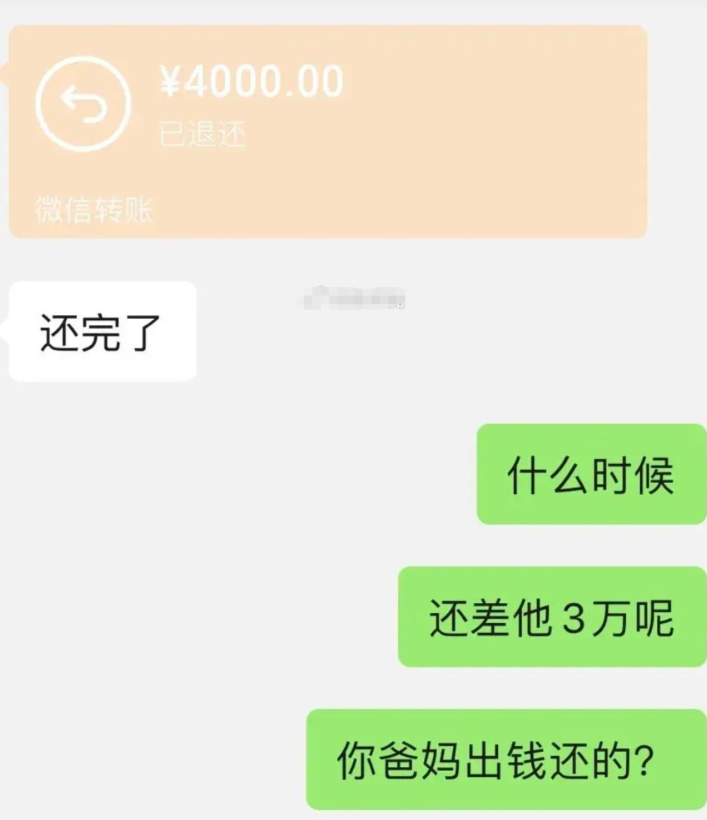 但讓這個女士萬萬沒有想到的是,老公把她的4000塊錢退回來了,告訴她已經還完了,這個女士真是詫異,爲什麼要還完?難道是他爸媽出錢還了?
