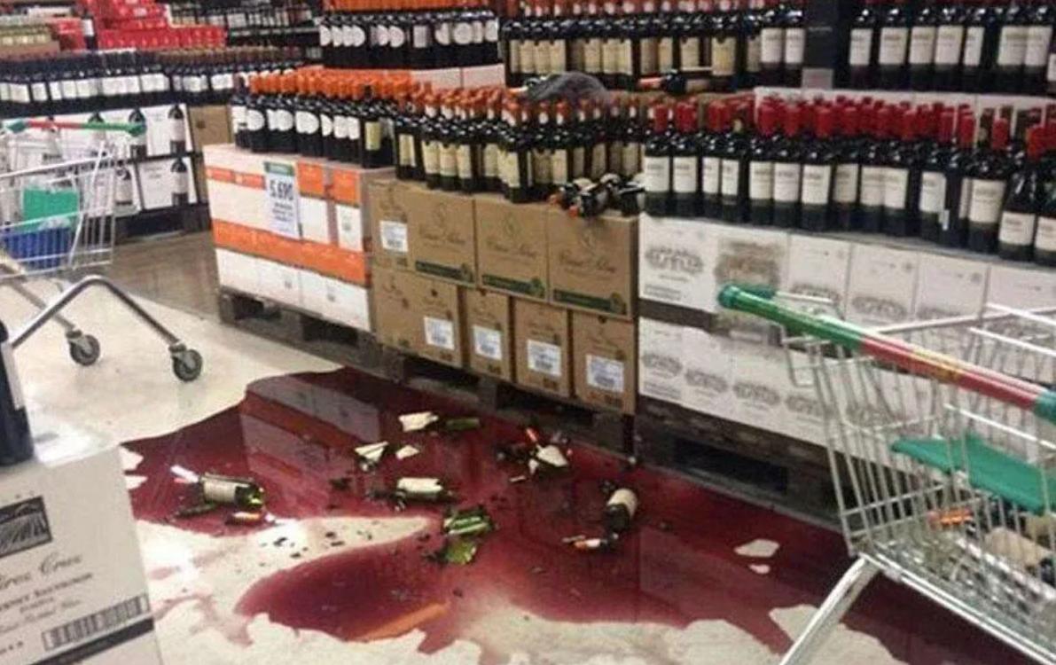爺爺因爲年齡大了,又在仔細挑選商品,而且耳朵也不是很靈了,只知道孩子在超市裏面也挺放心的,也沒有管孩子,沒想到毛毛跟另外一個小朋友在玩捉迷藏的時候,一不小心碰到了超市貨架上的紅酒。