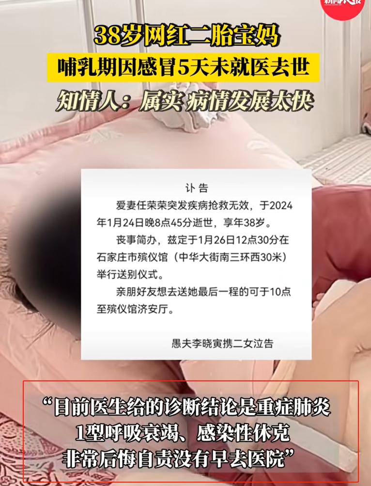 產後哺乳期,如果自己覺得不舒服的時候及時的去看醫生,特別現在是呼吸道病毒高發期,我們在感冒的時候也知道自己是普通的感冒還是嚴重的流感,萬一是嚴重的流感,自己扛不過去了,可能就跟這個二胎寶媽一樣了。