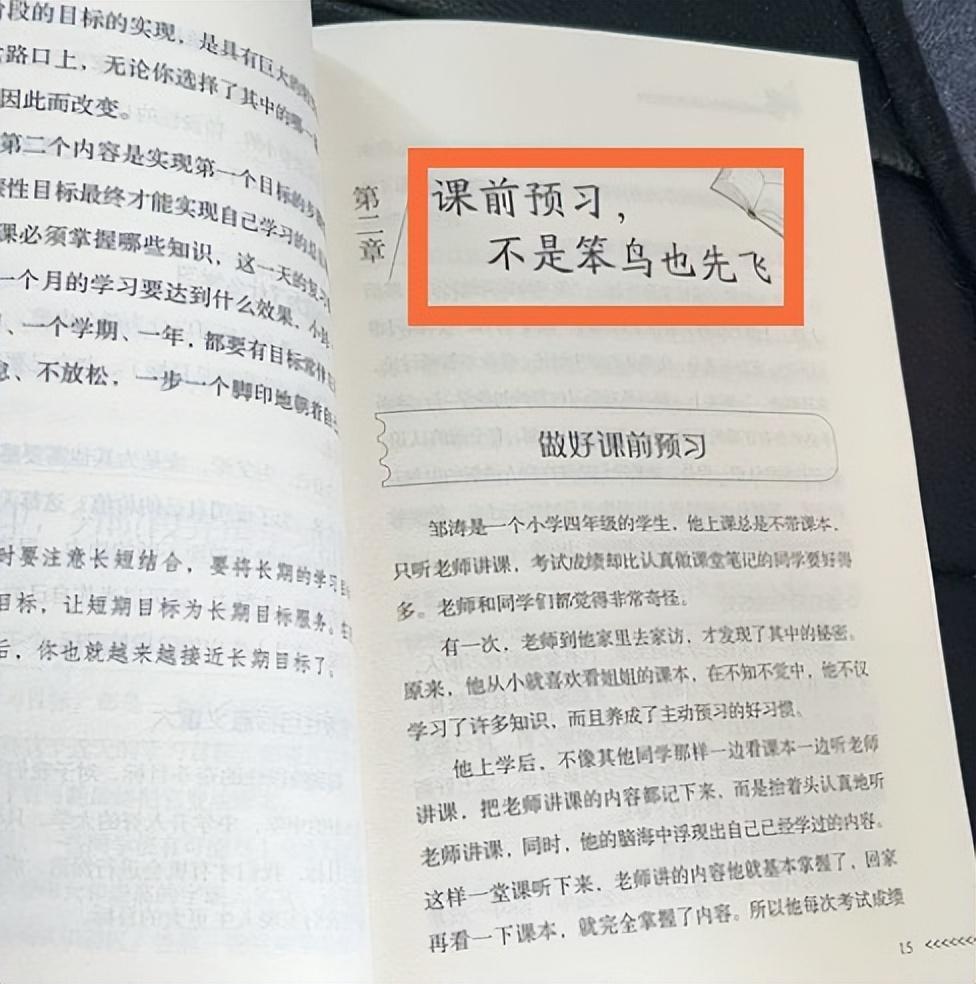 好的心態是成績提升的基礎,就像《給孩子的第一本學習方法書》說的一樣,不是笨鳥也要先飛。平時孩子能做好課前預習,找對方法正確預習語文、數學、英語,課後又能及時複習,不欠學習的賬,那麼孩子自然容易成績飛躍,成爲學霸。