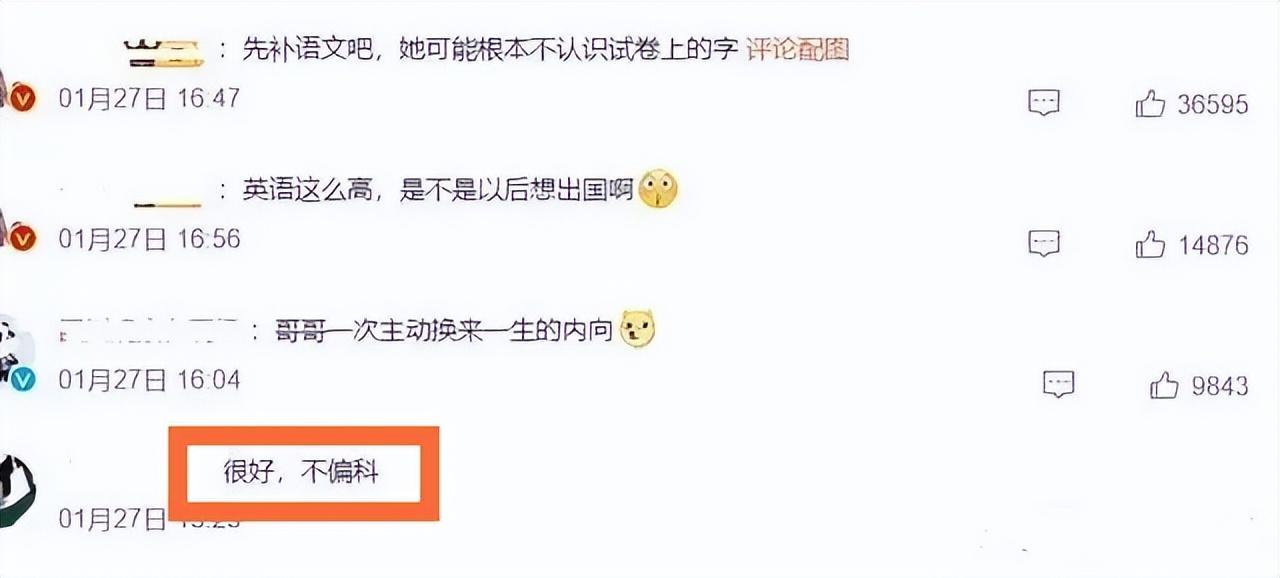 更有搞笑的網友安慰研究生哥哥:“你家妹妹不偏科,也挺好,成績提升的空間還很大啊!”