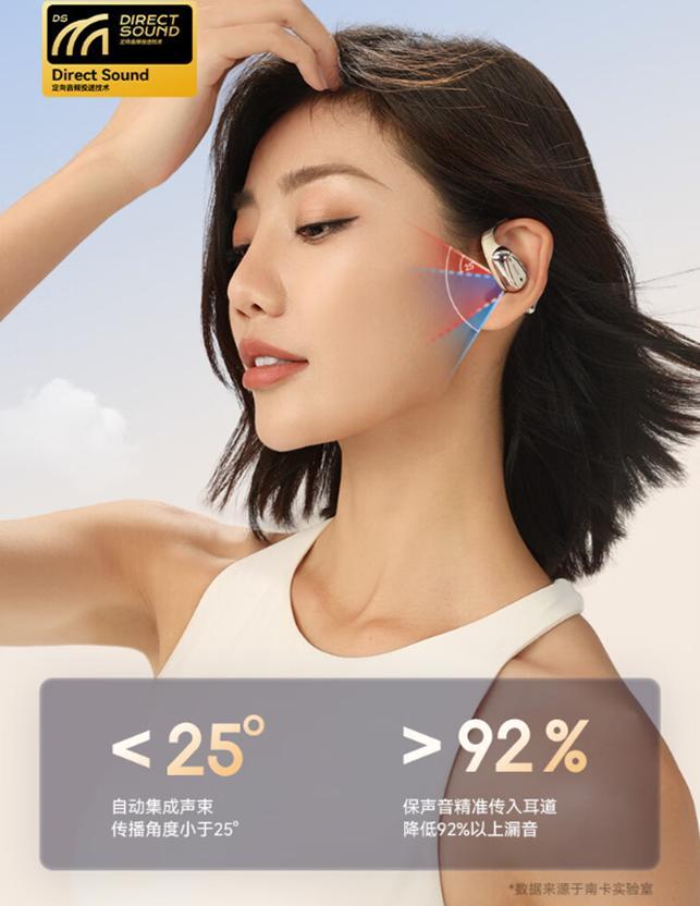 芯片用的是專爲開放式耳機打造的藍牙5.4芯片SOC,性能全面碾壓,進一步提升通訊效率和抗干擾性,使用時秒連、秒響應,同時還兼具更高的數據傳輸速度+更低的通訊延遲和能耗。
