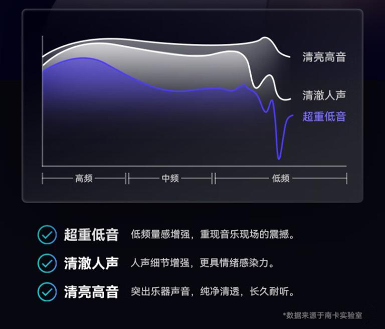 再就是集合動態低音增強技術、耳道補償及個性化聽感三大技術,調教金耳朵音質,實現“不在現場卻如臨現場”的音效效果。