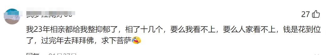 一個網友說,2023年的時候相了十幾個,結果要不是你不喜歡我,要不就是我不喜歡你,錢是花的到位了,但是對象還是沒有。