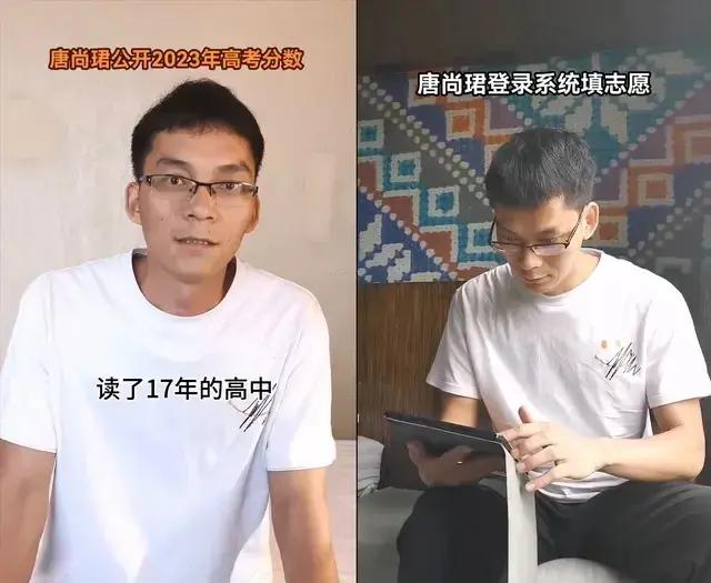 而與之相對應的是廣西欽州的考生唐尚珺,已經讀了17年的高中,總共參加了15次的高考,而他最終的夢想就是清華大學,考不上清華他就一直在復讀,復讀到爸爸因爲癌症去世,復讀到媽媽滿頭白髮,復讀到他自己也像一個小老頭!