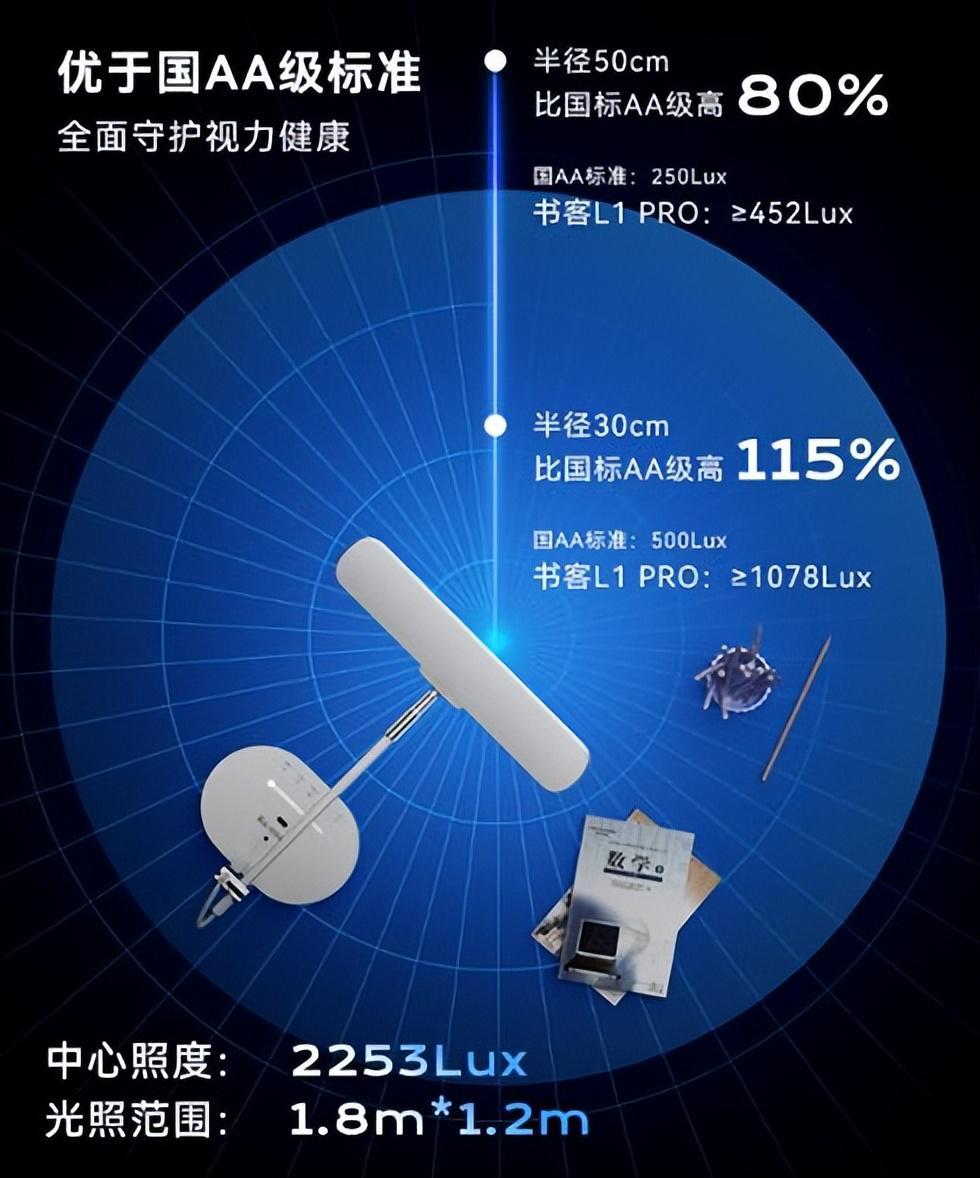 同時配合OCLT光透鏡技術(醫療手術燈的光分佈原理),360度交疊照亮桌面,消減陰影;再加上背發光設計(補償背部暗光),不論是看書還是寫作業,桌面上不會出現重影和陰影,光線均勻明亮,減少孩子視覺疲勞,也提高專注力。