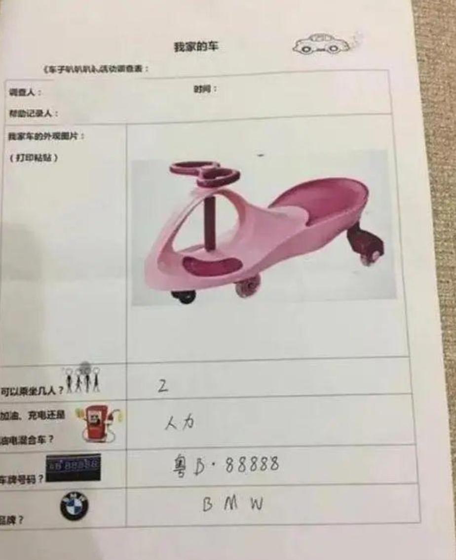 後來我在網上就問了一些網友,發現不只是我們家孩子入幼兒園會有這樣的調查表,在網上這樣的調查表還真是五花八門,甚至有一些幼兒園要求的調查表,是跟自己家的汽車一起照相,寫上汽車的車標,還有車牌號碼,有多少個輪子?