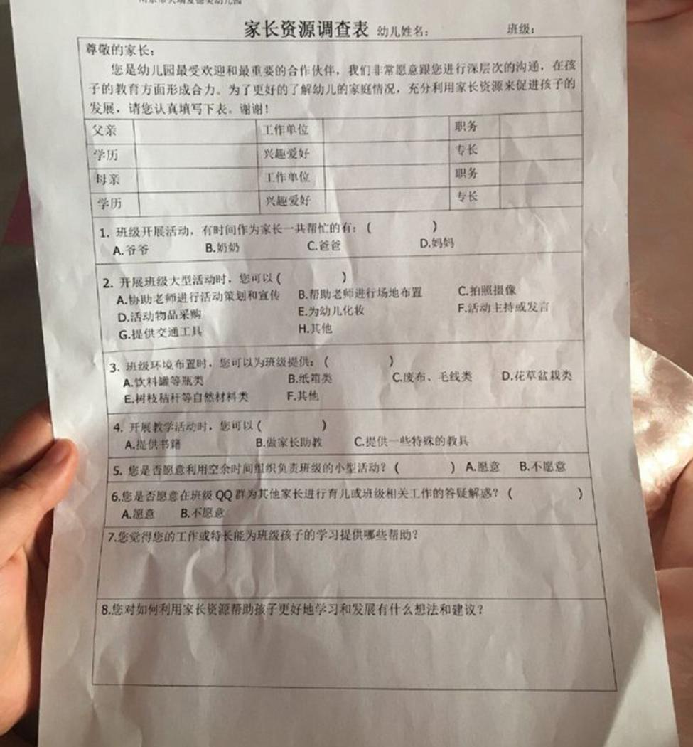 幼兒園家庭問卷暗藏“玄機”,聰明家長反套路,網友:摸家底沒門