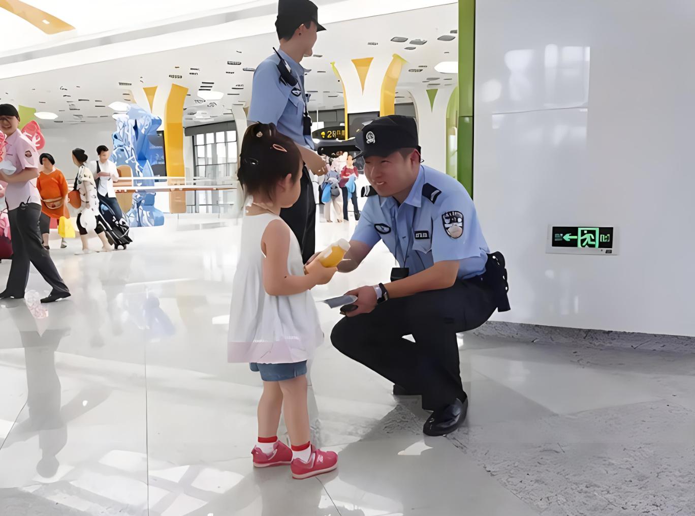 她在商場裏面看到了一個巡查的保安,覺得保安身上的衣服就像警察叔叔的衣服,於是她逮住了保安就說:警察叔叔我找不到爸爸了,你帶我去找爸爸。