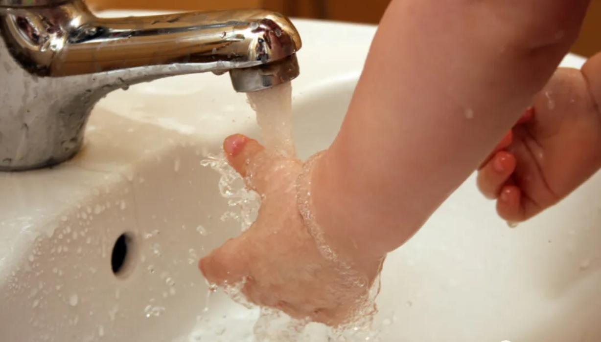 我們要用流動的水來衝,用流動水衝的時候一定要注意水龍頭不要開得太大,因爲孩子被燙傷之後,他的皮膚會比較嫩一些,用流動水給孩子衝的時候,冷水能夠降低孩子被燙傷部位的溫度,避免皮下進一步被燙傷,這樣可以大大的減輕孩子被燙傷的程度。