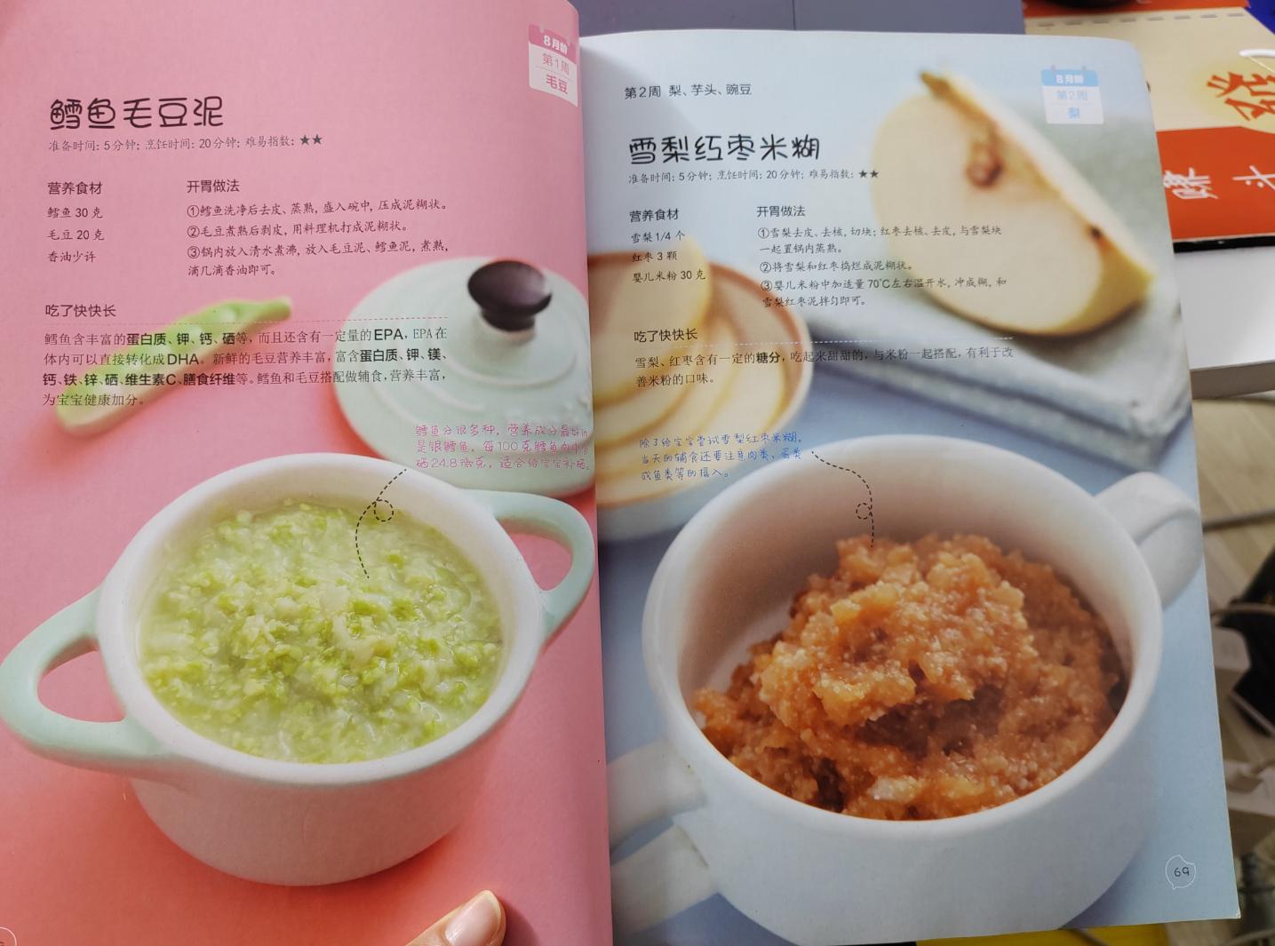 更是有寶寶6個月到3歲每一個月齡的輔食安排,每一頓該給孩子喫什麼輔食,該怎麼做?每一道輔食都有很詳細的製作方法,需要什麼原材料,需要多少克,怎麼處理,怎麼烹飪,做出來的成品是什麼樣的還有高清的圖片。
