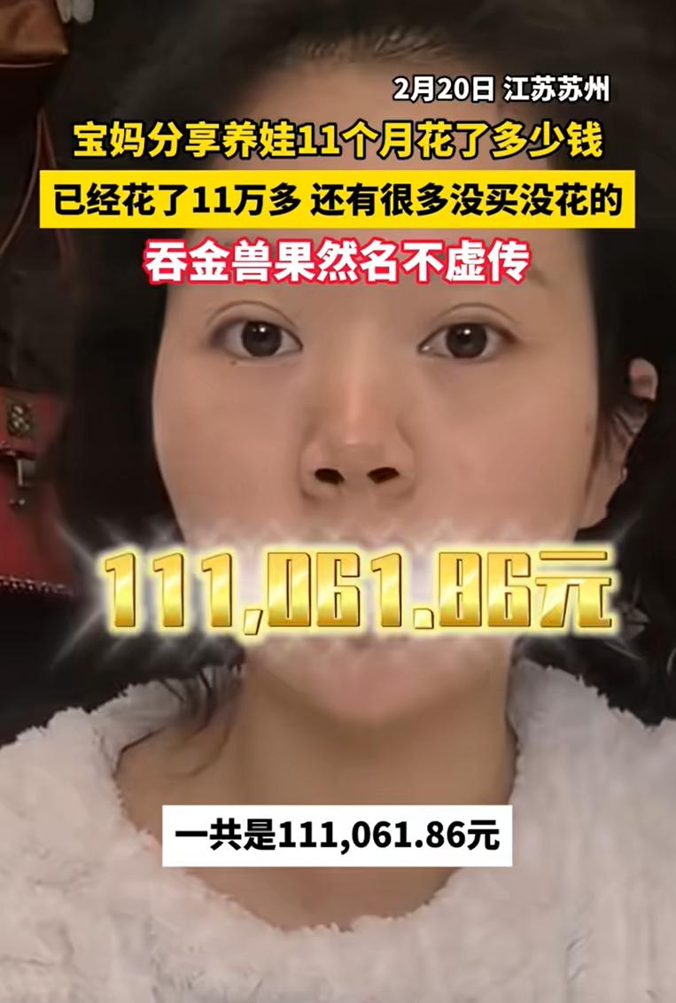 要知道這11萬花費的時間還不到一年時間,就讓這個寶媽感嘆:沒錢不要生孩子,因爲她覺得自己的消費觀念是能省就省,不會亂花,但萬萬沒有想到,居然花了111061.86元。