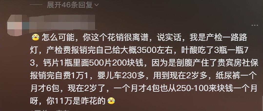 而評論區裏面的網友們炸了鍋,有網友覺得懷孕到生下孩子11個月花了這麼多,確實是有點多。