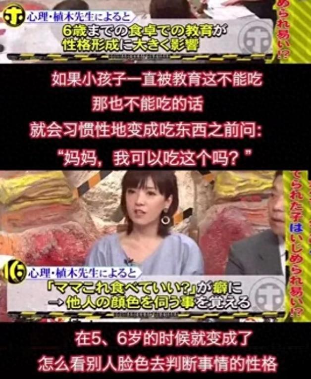 日本的綜藝節目裏,心理心理學者、慶應大學講師植木理惠說過這樣一個話題:“除非孩子對某種食物過敏,我們不能讓他食用。如果媽媽在孩子喫飯的時候,對他有很多要求,比如,只能喫自己家做的東西,只允許喫無添加的東西,其它的都不準喫。如果形成習慣,小孩子到了可以上學的年齡,就很容易成爲欺凌的目標。”