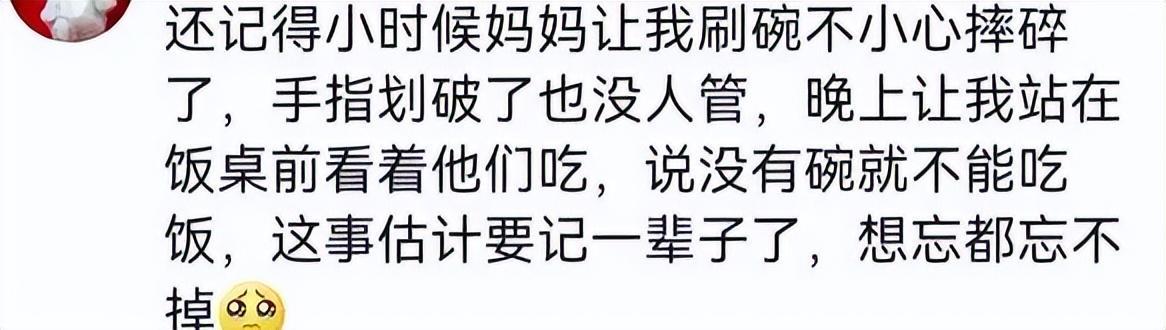 有網友說:“我偷摸跑出去,撿回兩捆柴,我媽白我一眼,我纔敢進廚房喫了一碗剩飯……”