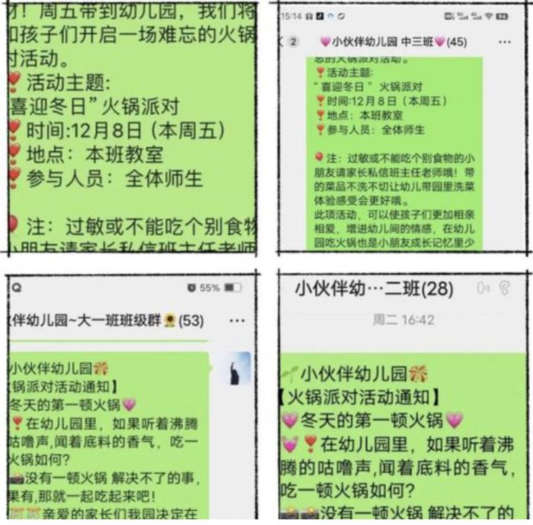 比如說幼兒園舉辦火鍋大賽的話,萬一孩子比較着急喫,喫到沒有熟的肉就可能造成寄生蟲感染。萬而且喫火鍋的時候都是熱氣騰騰的,萬一孩子不小心被燙到了,所以這種風險也是極大的。