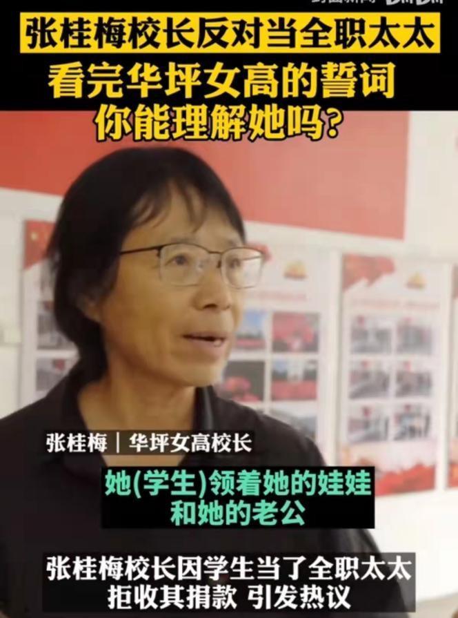 還記得之前張桂梅校長對一個學生剛大學畢業沒有工作就直接選擇嫁人,做一個全職太太,·非常的氣憤。經過這麼多年的努力你才考上大學,結果她早早嫁人做全職太太,實在是太對不起她了,後來這個學生想去給張桂梅捐款,也被張桂梅給罵走了,不要她的錢!