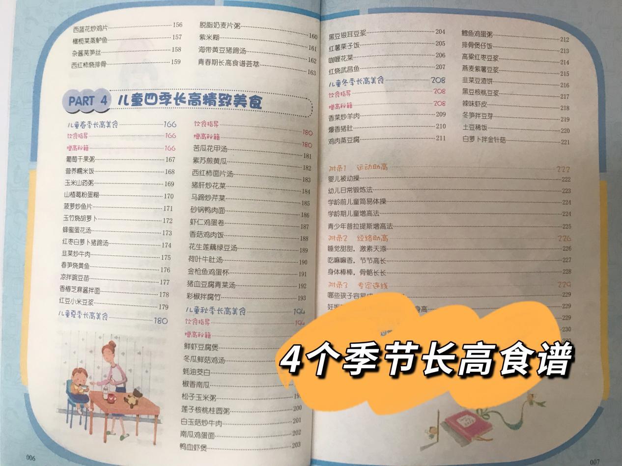 這本書還根據孩子5個不同的成長階段,比如嬰兒期、幼兒期、學齡前、學齡期、青春期,和春夏秋冬4個不同的季節孩子的生長髮育特點,分別給出了不同的促長個飲食方案,針對性強,長個效果明顯。
